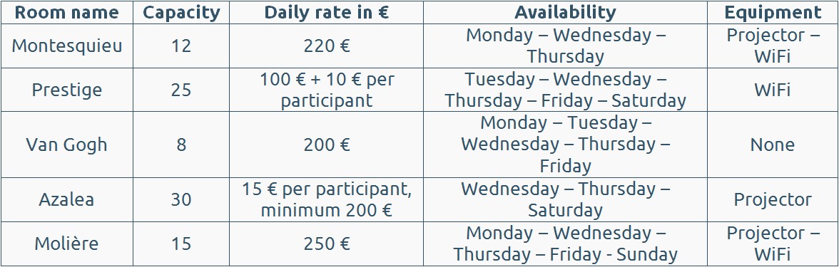 You wish to book a room that can accommodate 11 people for Tuesday. Which is the cheapest room?